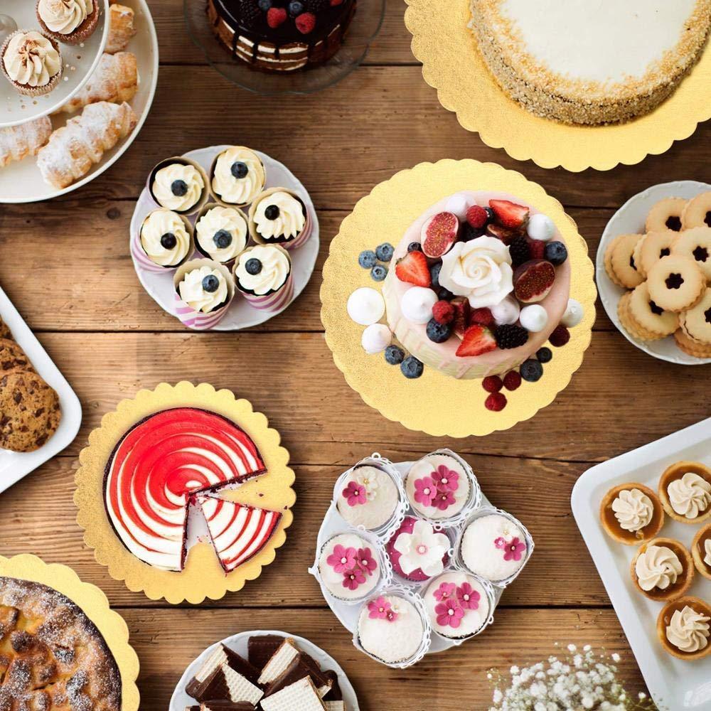 قواعد كيك ذهبي دائري مشرشر الأطراف مقاسات متعددة ( 10 حبة )